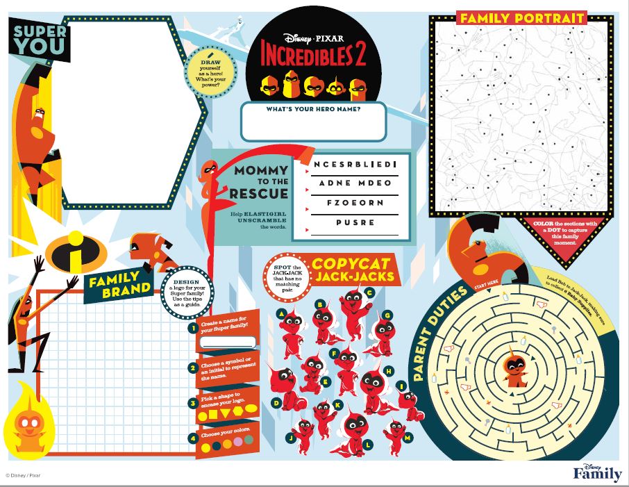 Your Little Super Will Love This Activity-Packed ‘Incredibles 2’ Placemat